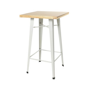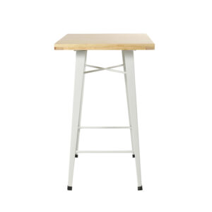 Mesa Tolix Bar Blanca Con Soporte Metal Blanco 60X60 /Madera Clara