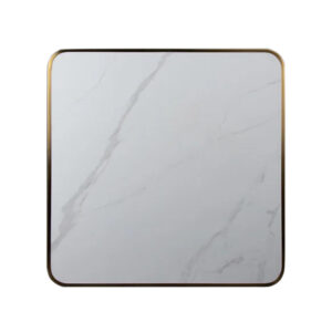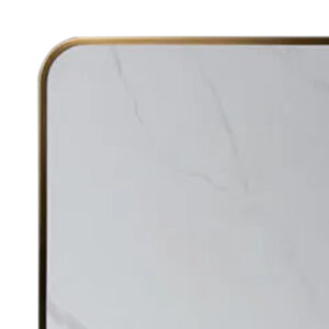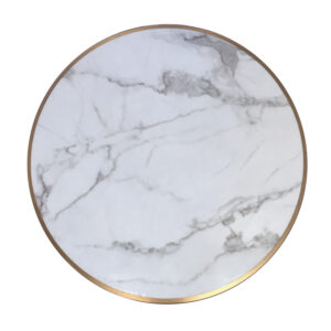 Cubierta HPL terminación Mármol Carrara Borde metálico dorado